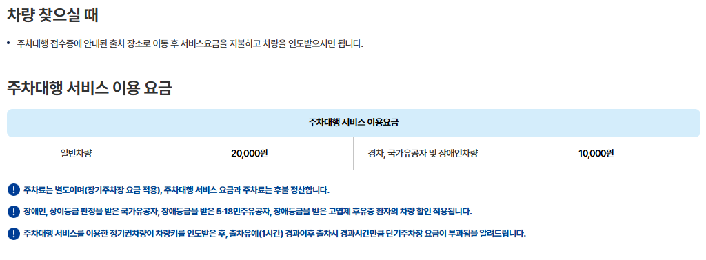 | 발렛 수수료 | 20,000원 + 주차 요금 별도 |