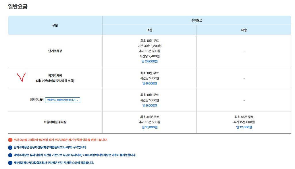 - 별도 주차 요금: 장기주차장 기준 별도 부과