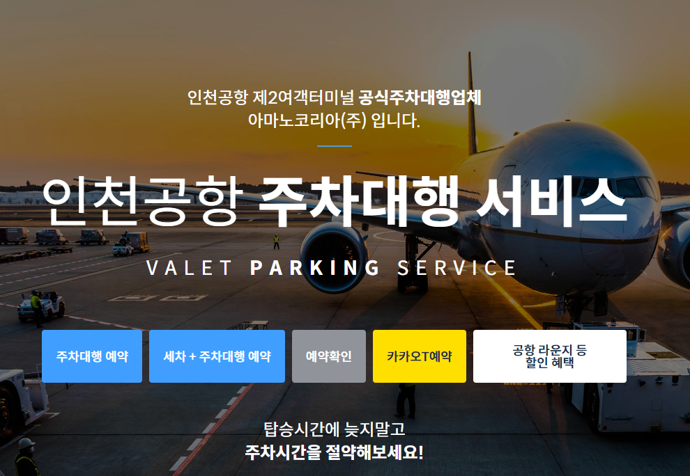 공항 도착 후 차량을 맡기고 바로 출국장으로 이동할 수 있는 주차 서비스입니다. 인천공항 T1, T2 양쪽 모두 운영되며, 차량은 직원이 장기주차장으로 이동·보관하게 됩니다.