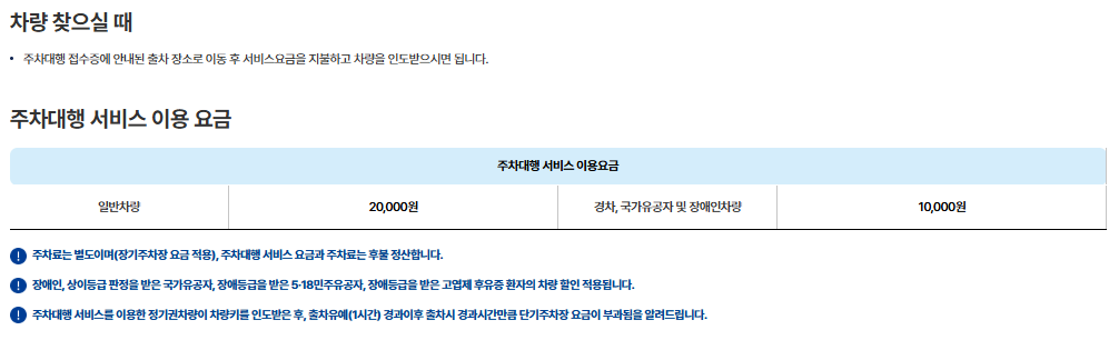 실제 주차는 장기주차장에 이뤄지며, 이용 시간만큼의 주차요금이 추가로 발생합니다.
