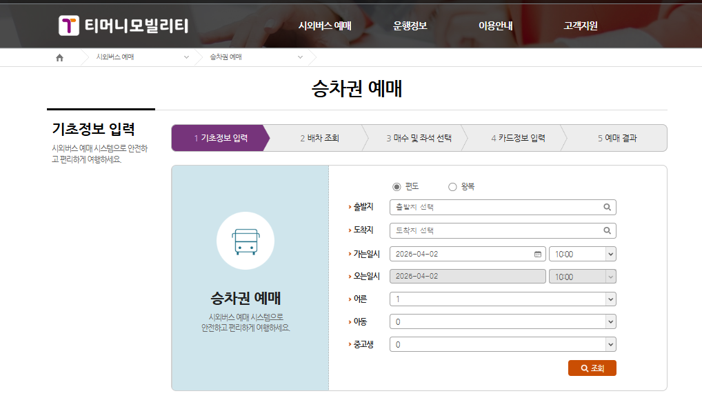 ① 티머니 시외버스 앱 또는 웹사이트 이용