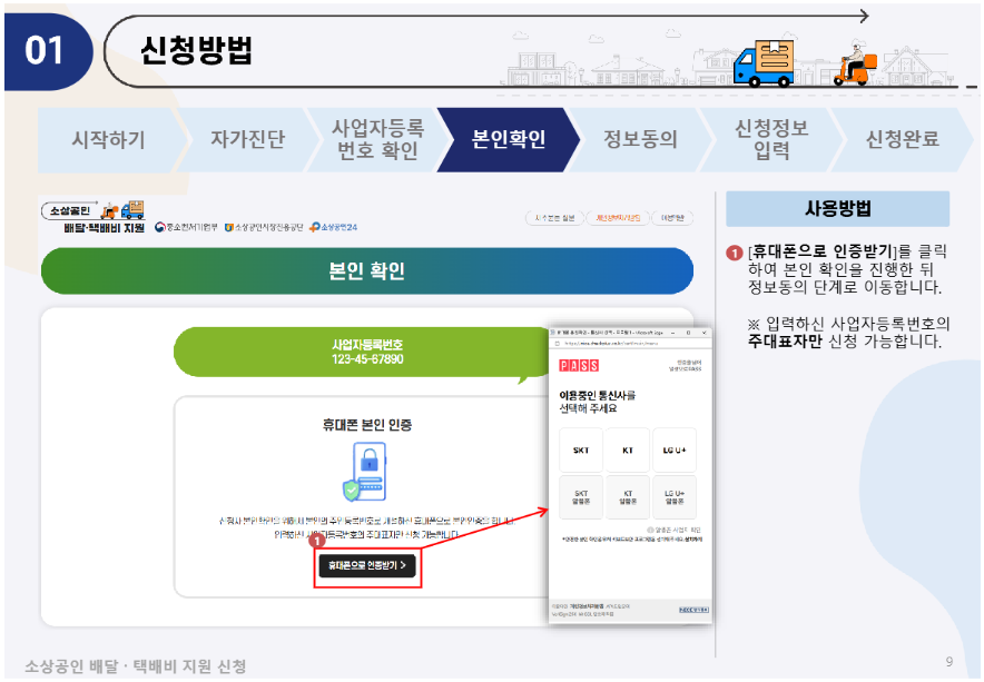 - 사업자등록증, 본인 인증 등 간단한 절차 후 신청