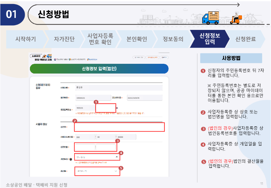 - 배달실적 자료 및 매출액·업종 등 대상 확인에 필요한 정보를 사전 확보하여 증빙자료 제출 없이 신속하게 신청 가능