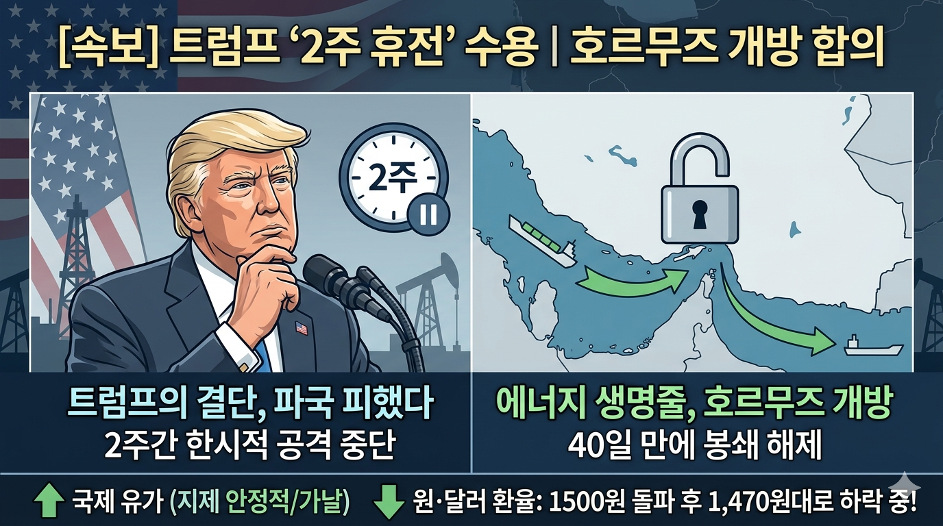 안녕하세요! 오늘 오전, 전 세계 경제를 흔드는 초대형 뉴스가 발표되었습니다. 바로 트럼프 미국 대통령이 이란과의 '2주간 한시적 휴전' 제안을 전격 수용했다는 소식입니다.