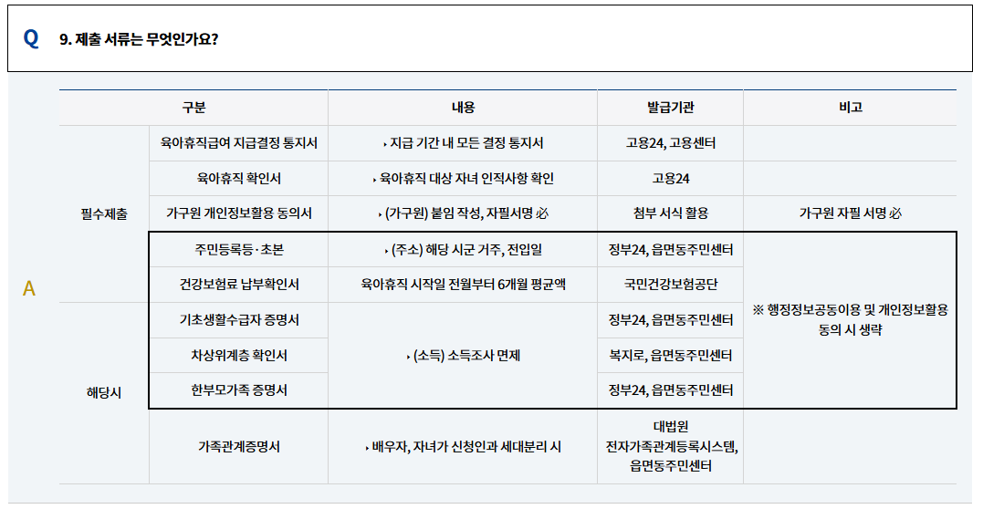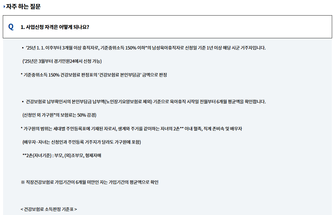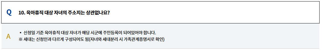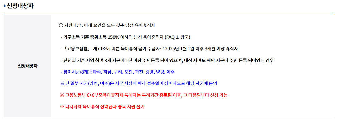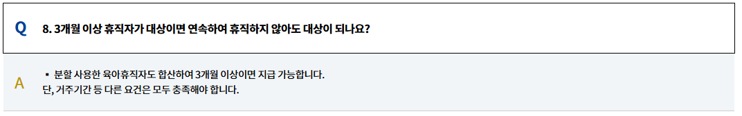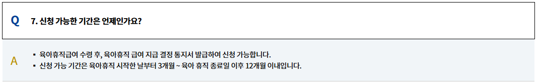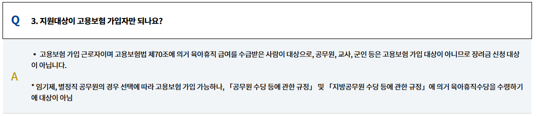 - 휴직 요건: 육아휴직 최소 3개월 이상 사용