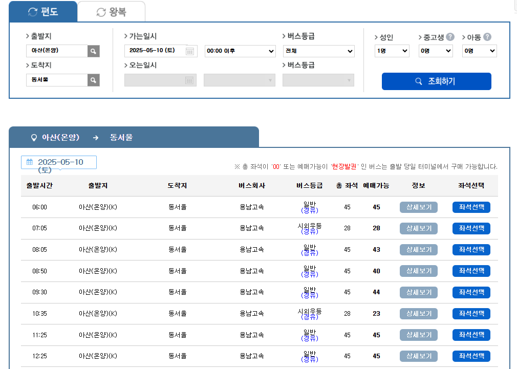 아산 시외버스터미널 내 매표소에서 현장 발권도 가능합니다.