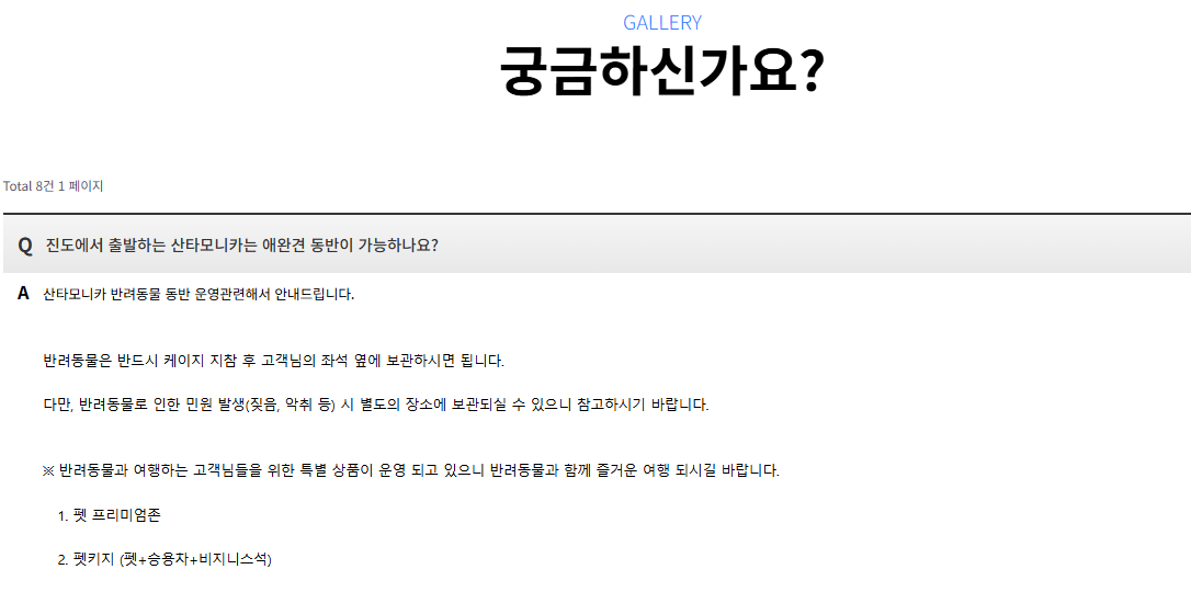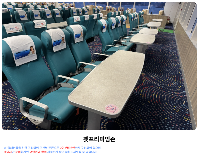 | 반려동물 | 가능 (케이지 필수, 선내 이동 제한) |