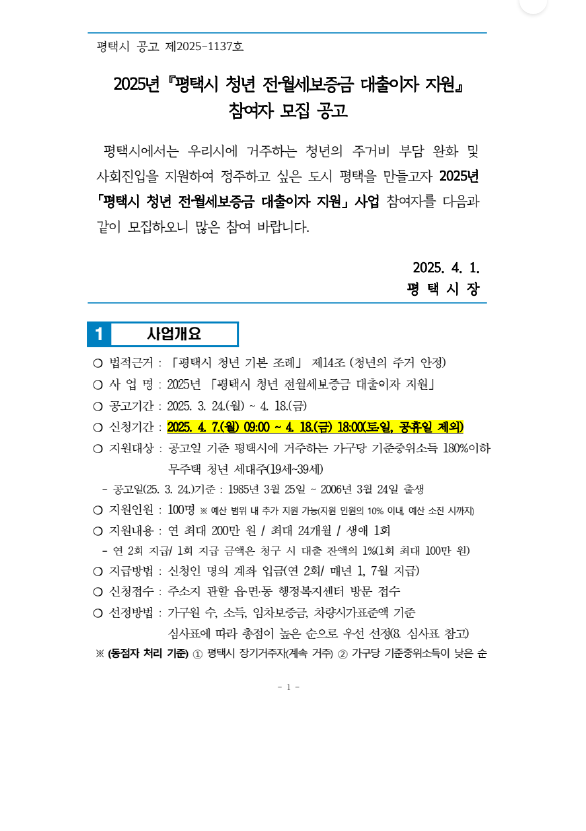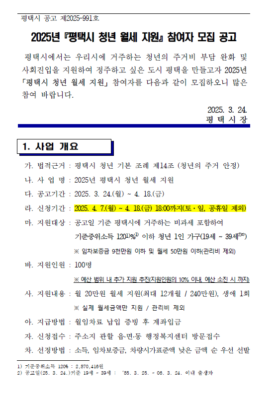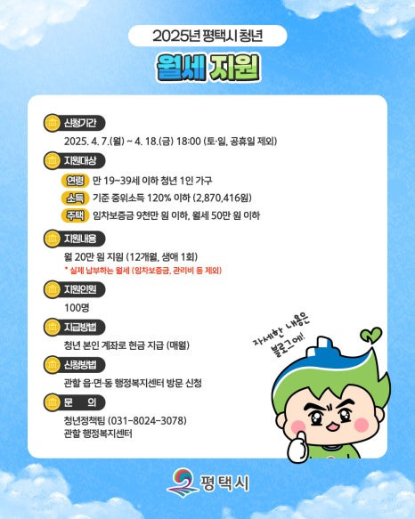 2025년 평택시 청년 주거비 지원사업이 시작됐습니다!