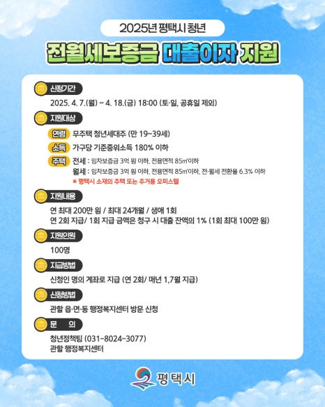 ✅ 평택시 청년 전월세보증금 대출 이자 지원