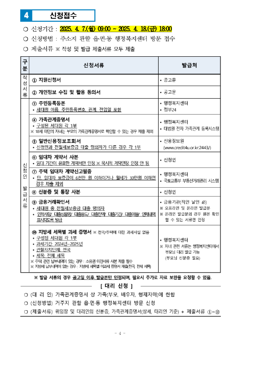 - 주민등록 주소지 읍·면·동 행정복지센터 방문 접수