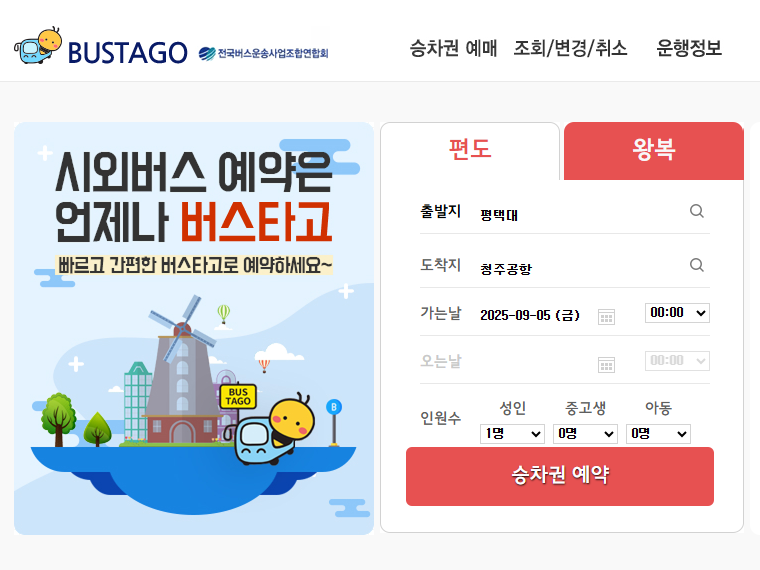 - 평택-청주공항 버스 요금은 출발지에 따라 다릅니다.
