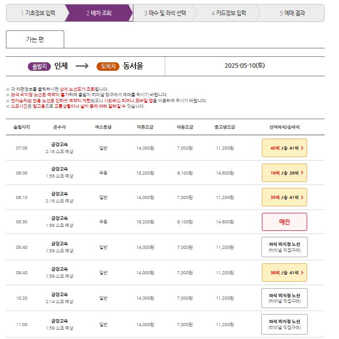 - 시간표, 요금, 잔여 좌석, 소요 시간까지 한눈에 확인!