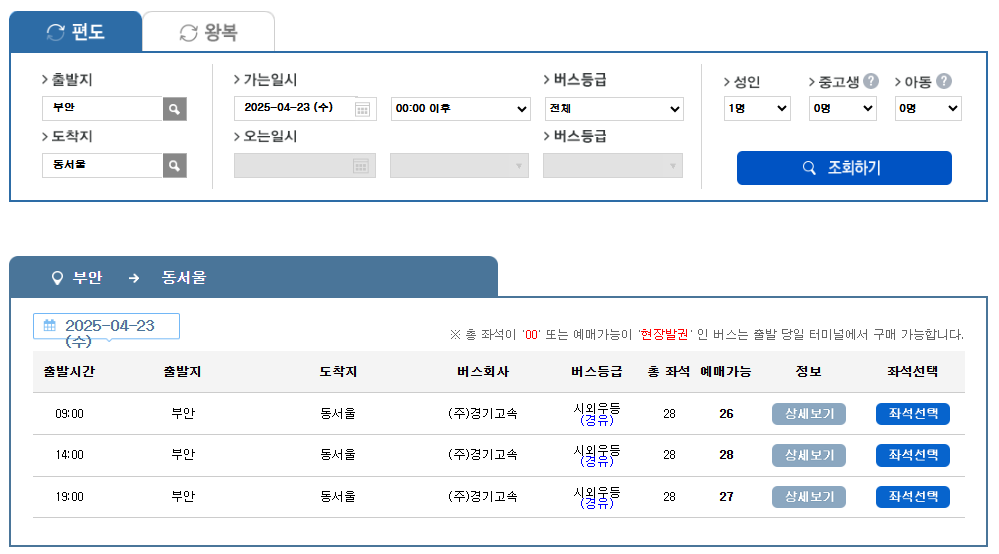 📝 팁: 버스타고에서 "부안터미널 → 목적지" 설정 후, 원하는 날짜를 선택하면 잔여좌석까지 확인 가능!