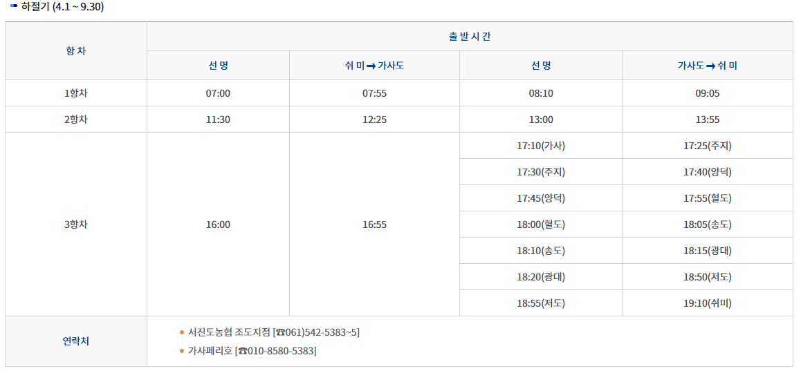✅ 쉬미 ~ 가사도(5속도) / 가사페리호(서진도농협)