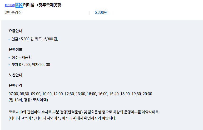 🚌 천안 - 청주공항 시외버스 노선