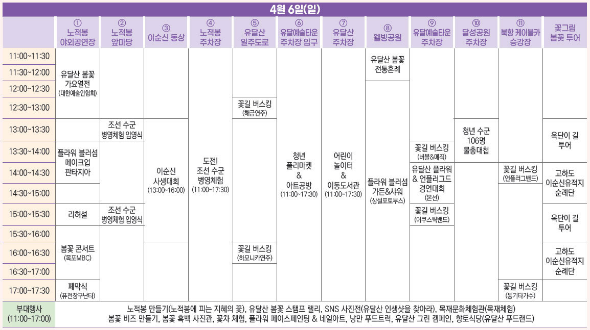 ✅ 가장 볼만한 프로그램? 👉 이순신 퍼레이드 & 봄꽃 콘서트